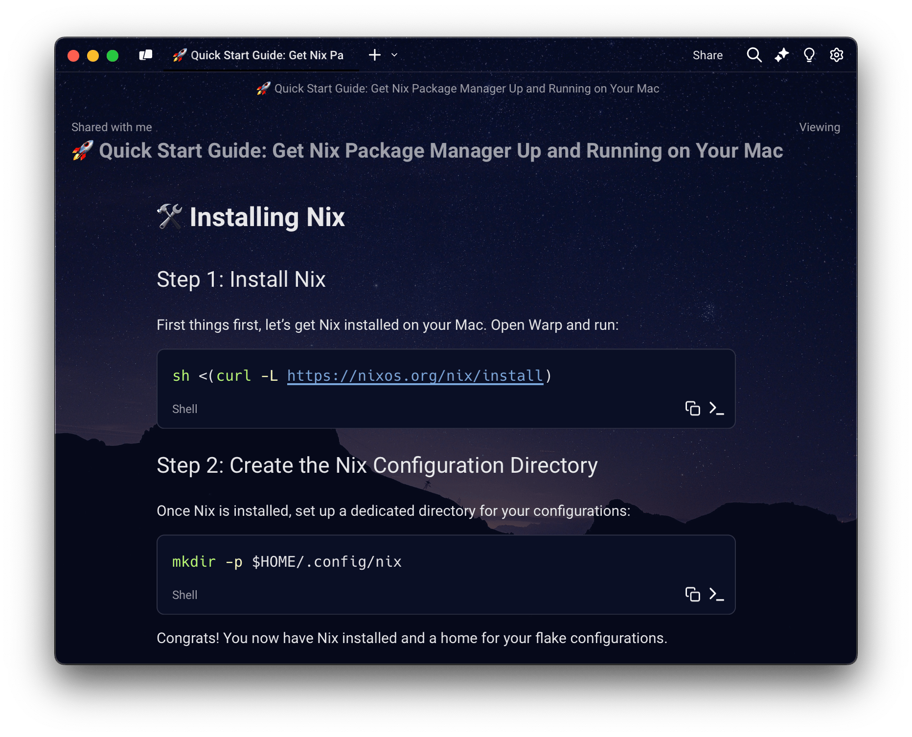 With the new Warp Drive sharing experience, you can share objects via specific email addresses or public links, all viewable on the web – even without a Warp account. Try out this starter pack we created for one of our favorite tools, Zoxide, to see for yourself!