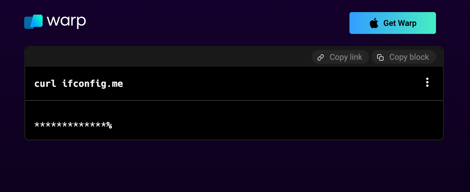 Here is an example of a Warp shared block with the secrets removed: