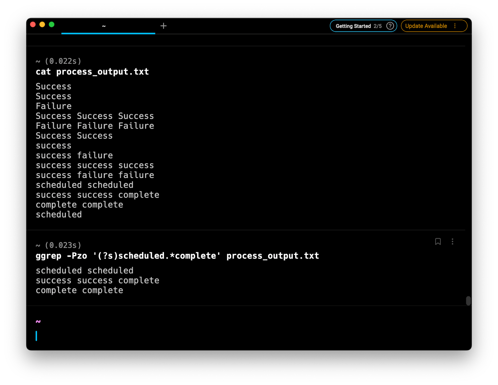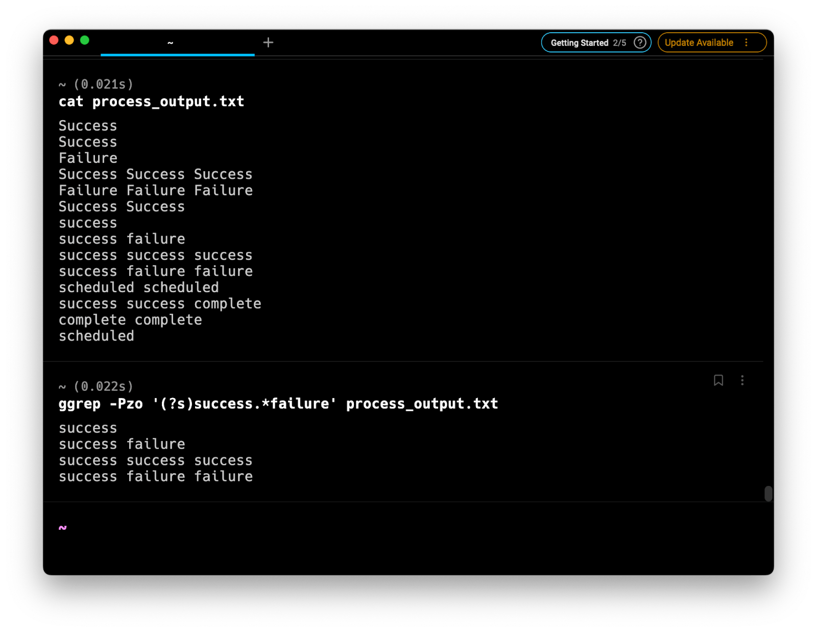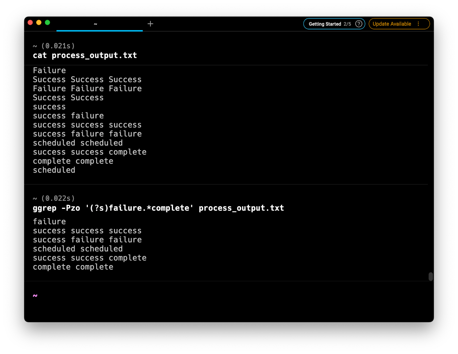 $ ggrep -Pzo '(?s)success.*failure' process_output.txt