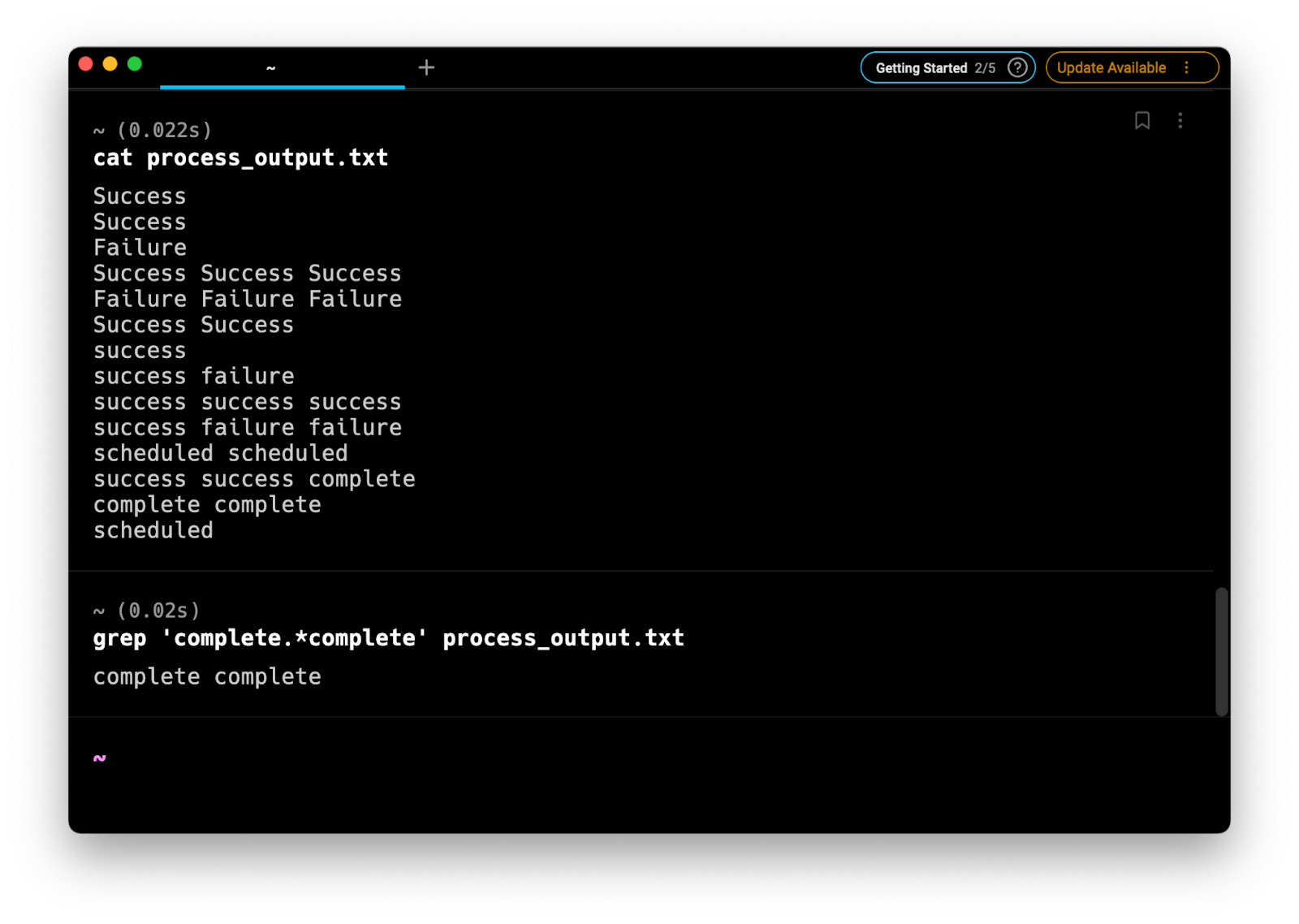 $ ggrep -Pzo '(?s)scheduled.*complete' process_output.txt