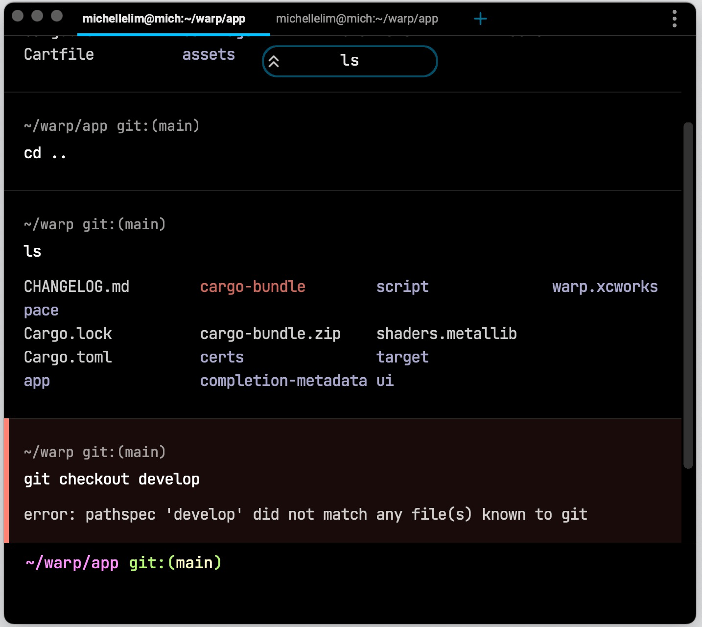Alongside glyphs and images, the rectangles we produce from these shaders form the UI surface of Warp. Using the GPU for rendering is what enables us to render large amounts of terminal text and UI at over 60fps on a 4K screen.