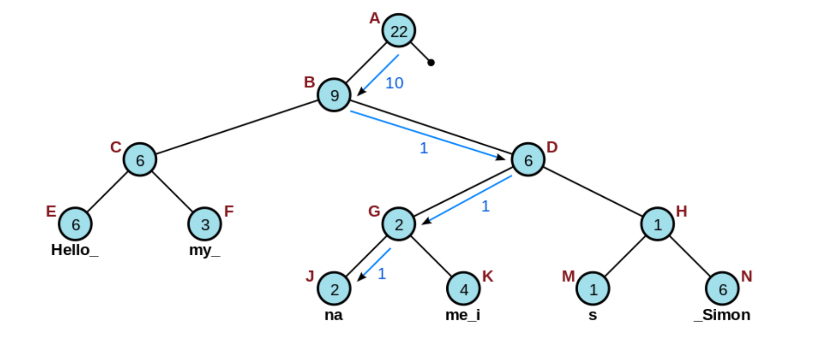 An example of indexing into a specific node of a Rope, given a character offset of 10 (credits to Wikipedia)