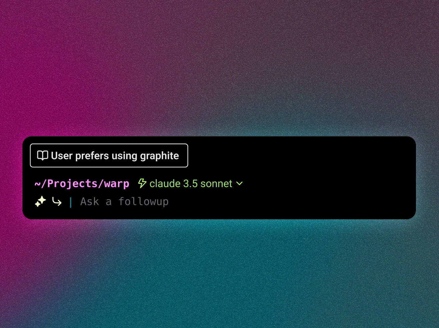 Warp can now save Rules, which will inform future responses. Rules can be anything from what tools you use, what libraries you have installed, and how your dev environment is set up. You can even use Rules to tell Agent Mode how to talk to you. Wish your responses were more succinct or more instructional? Make a Rule.