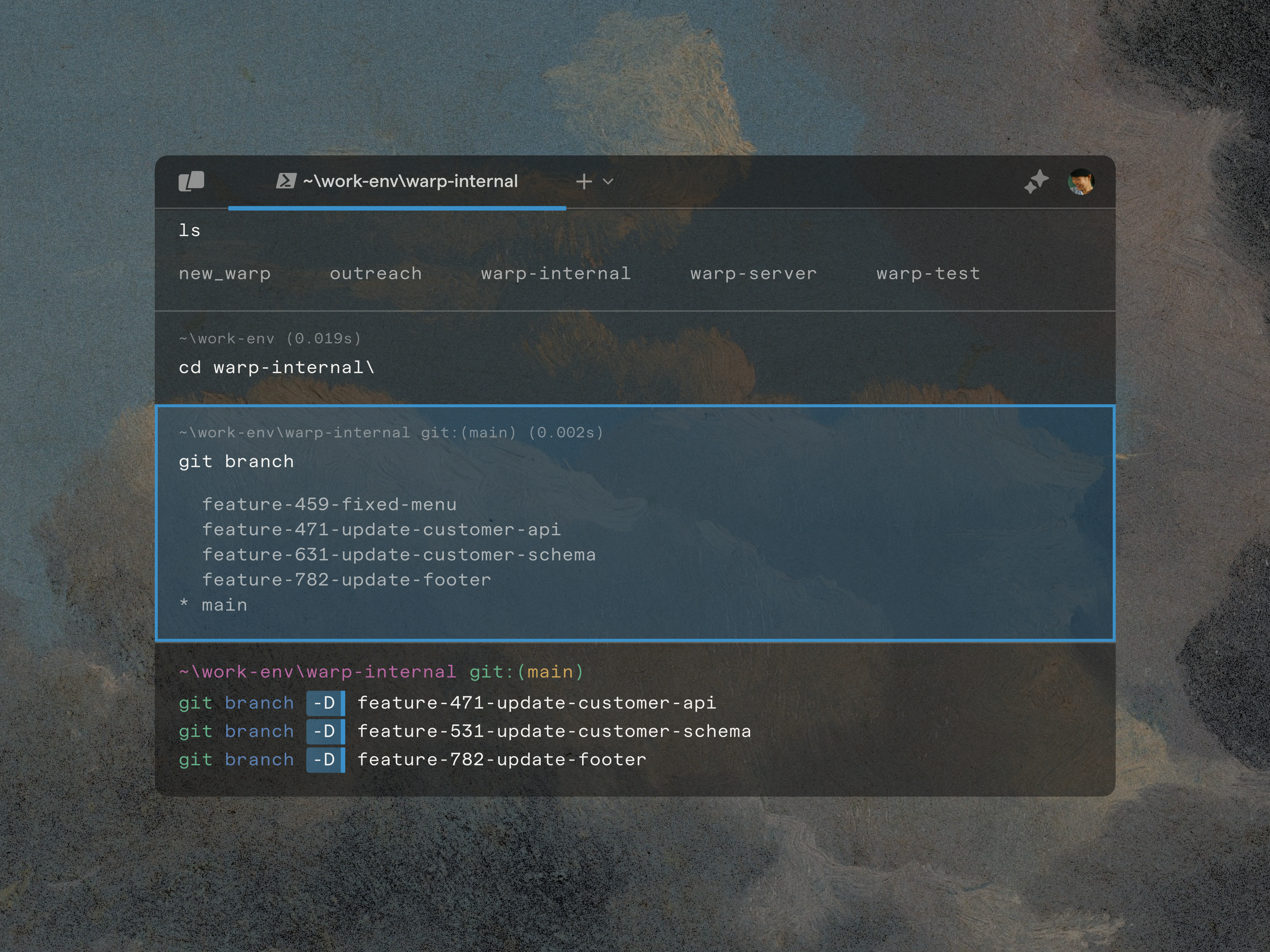 And while Warp is powerful out of the box, the customizations are endless. Create custom themes, enable Acrylic effects, personalize the input positioning, and make it your own.