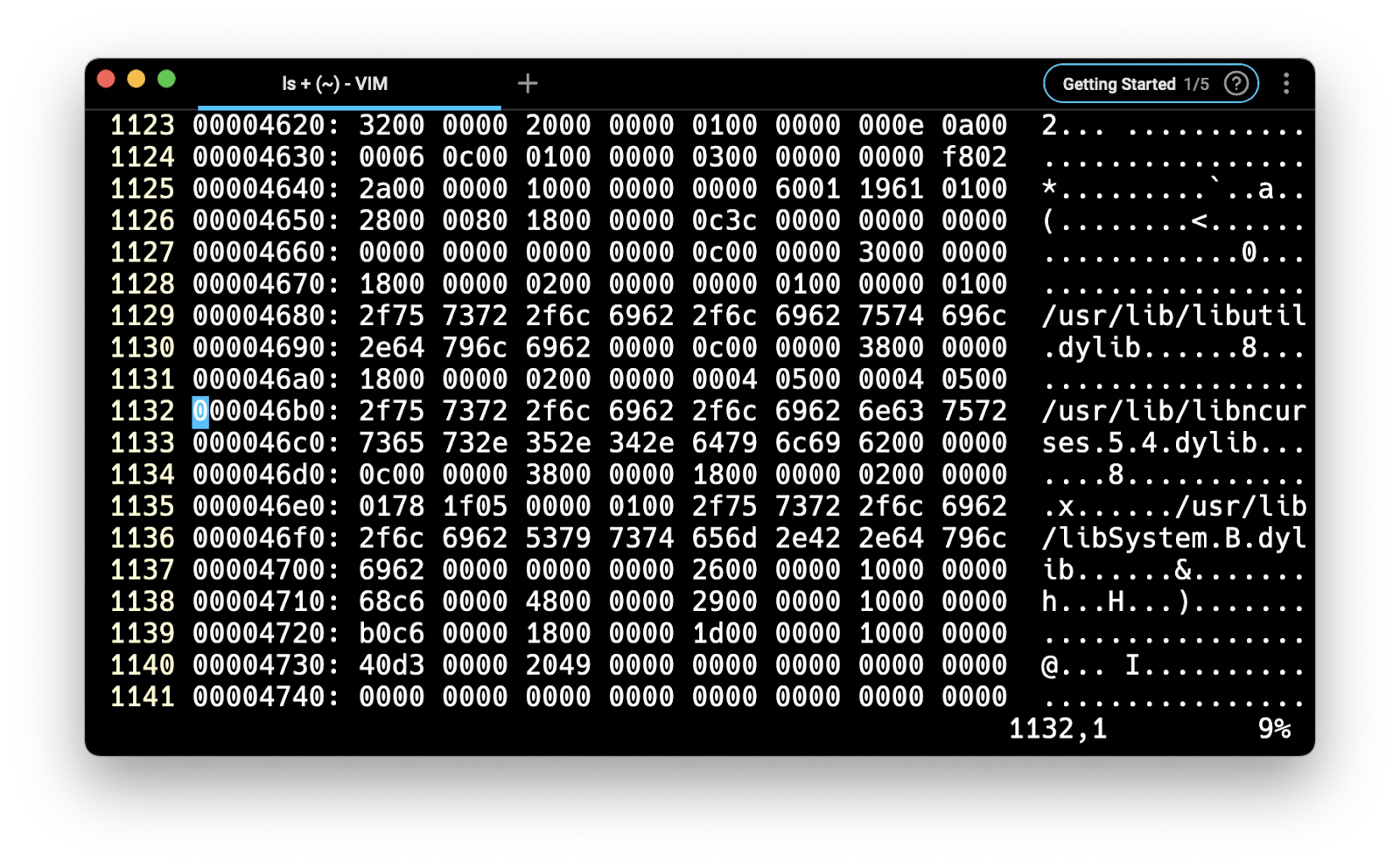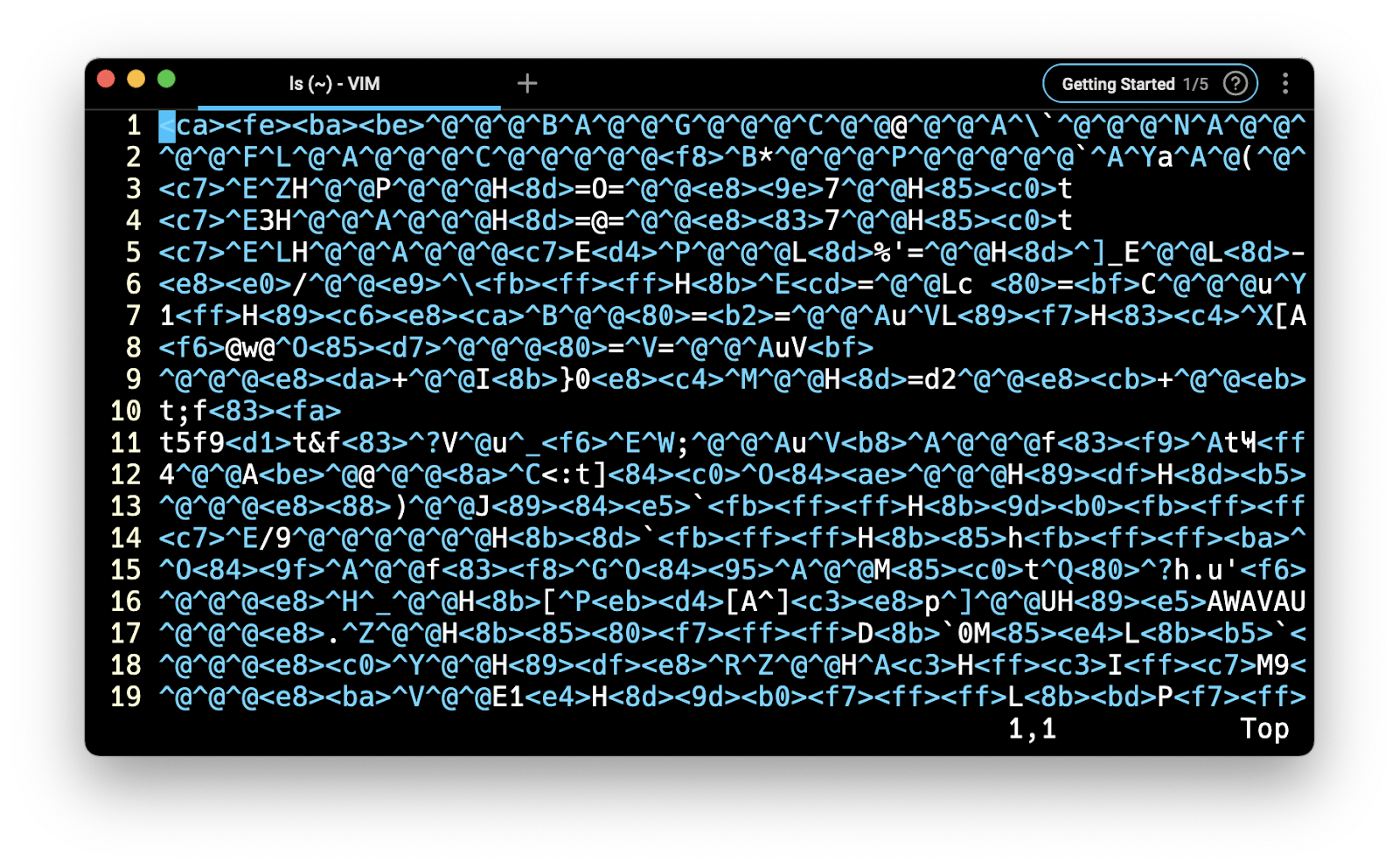 - Type the :%!xdd -r command and press the ENTER key to reverse the buffer to its binary form.