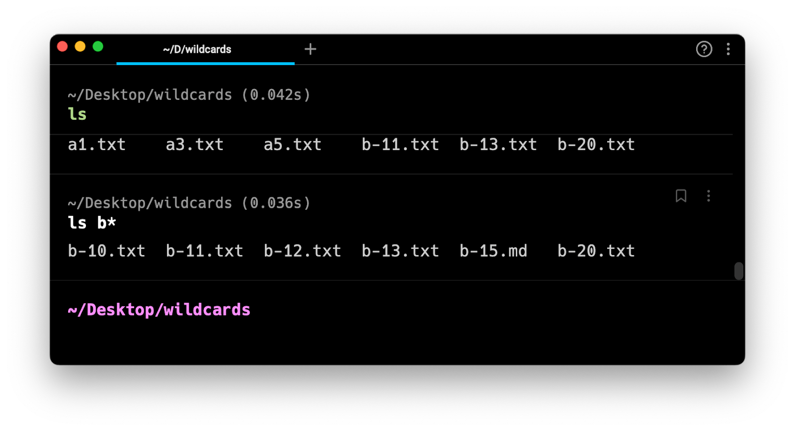 An asterisk (*) matches any number of characters: ls b*
