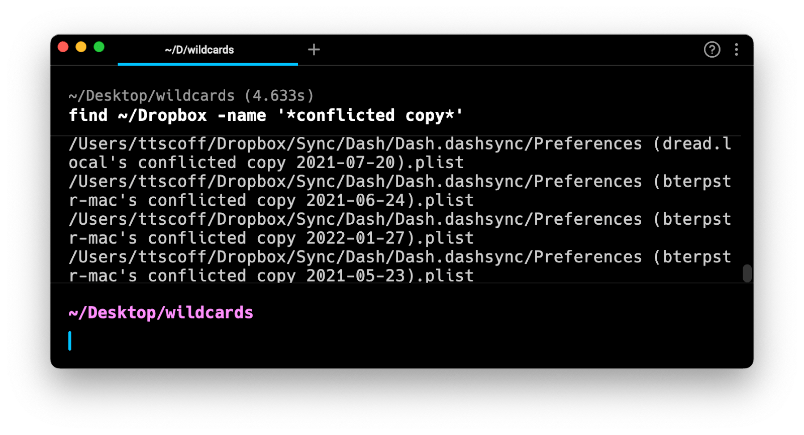 Examples of commands with wildcards