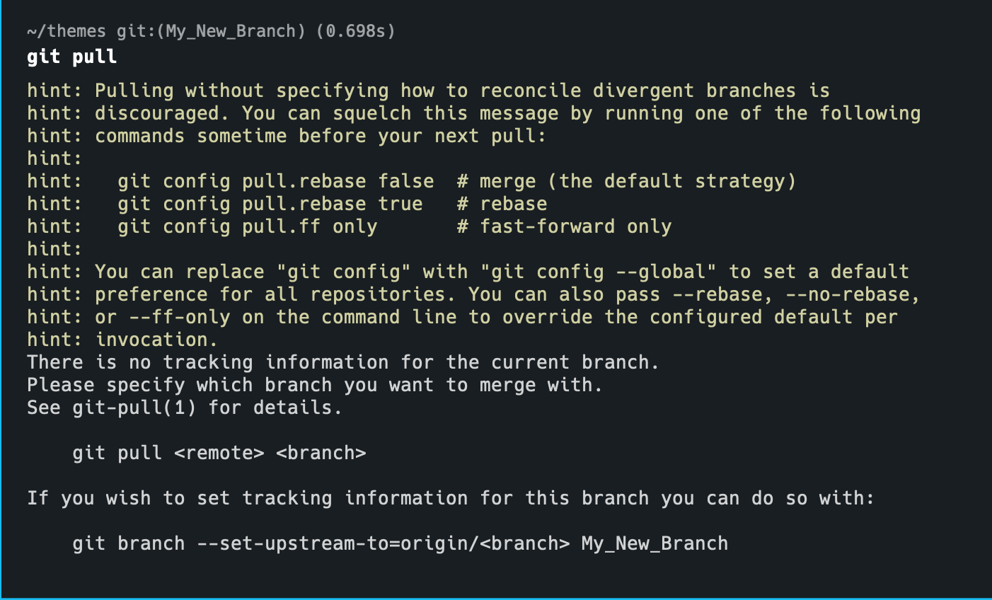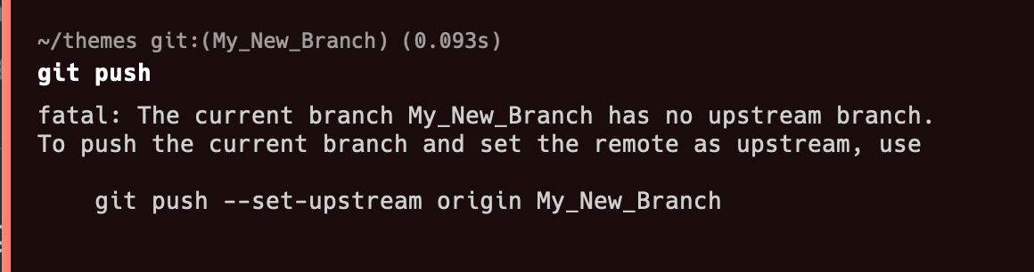 I'm giving AI Command Search .7 points here because it got the main part of the command, but missed some important parameters. If you run git push before setting an upstream branch, you may get an error like this: