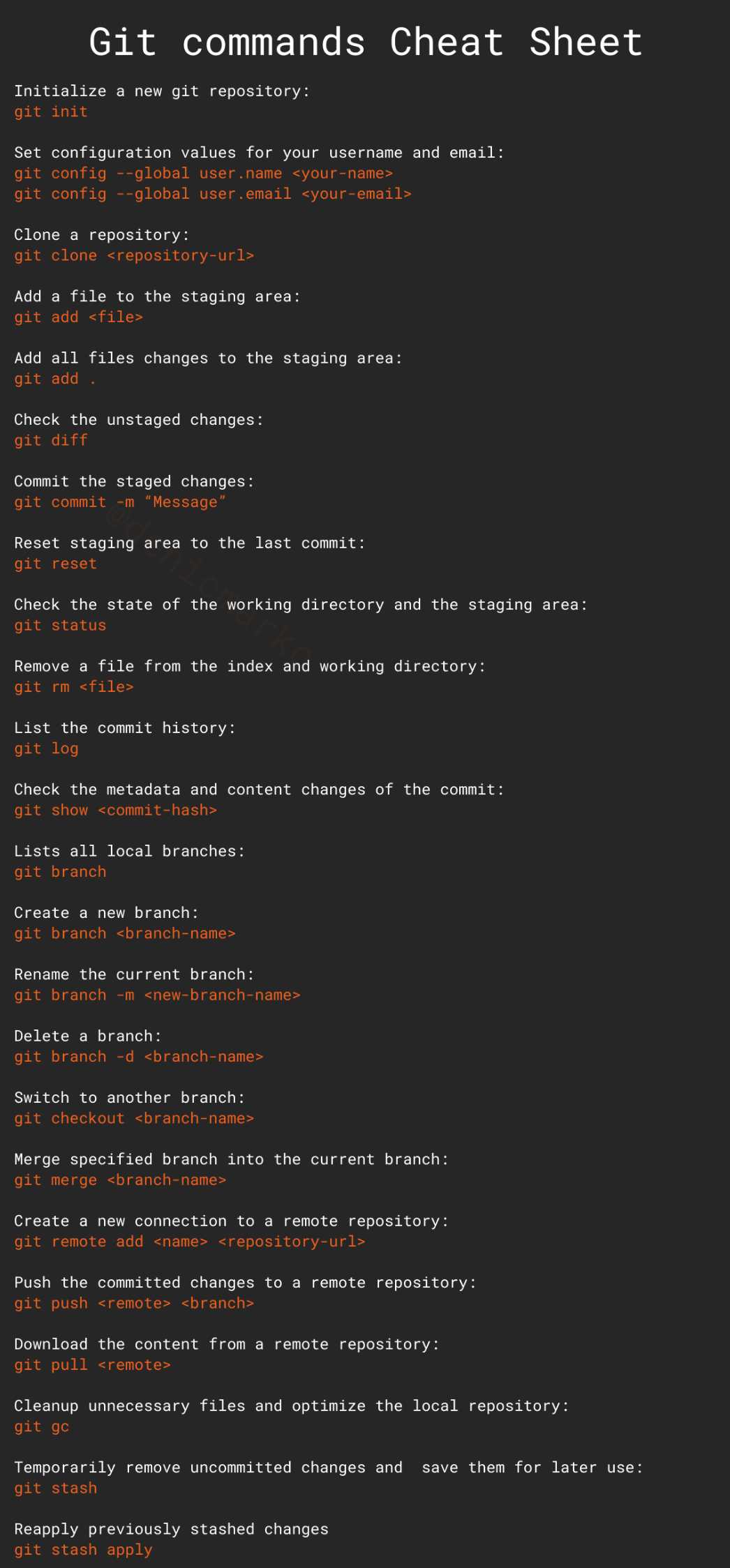 13 of the commands were perfect matches to what the Git Command cheat sheet provided.