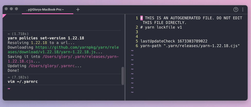 - Within that directory, set the Yarn version to V2 with yarn set version berry- this will download the specified version from the yarn repository, store it within your project, and update the settings.