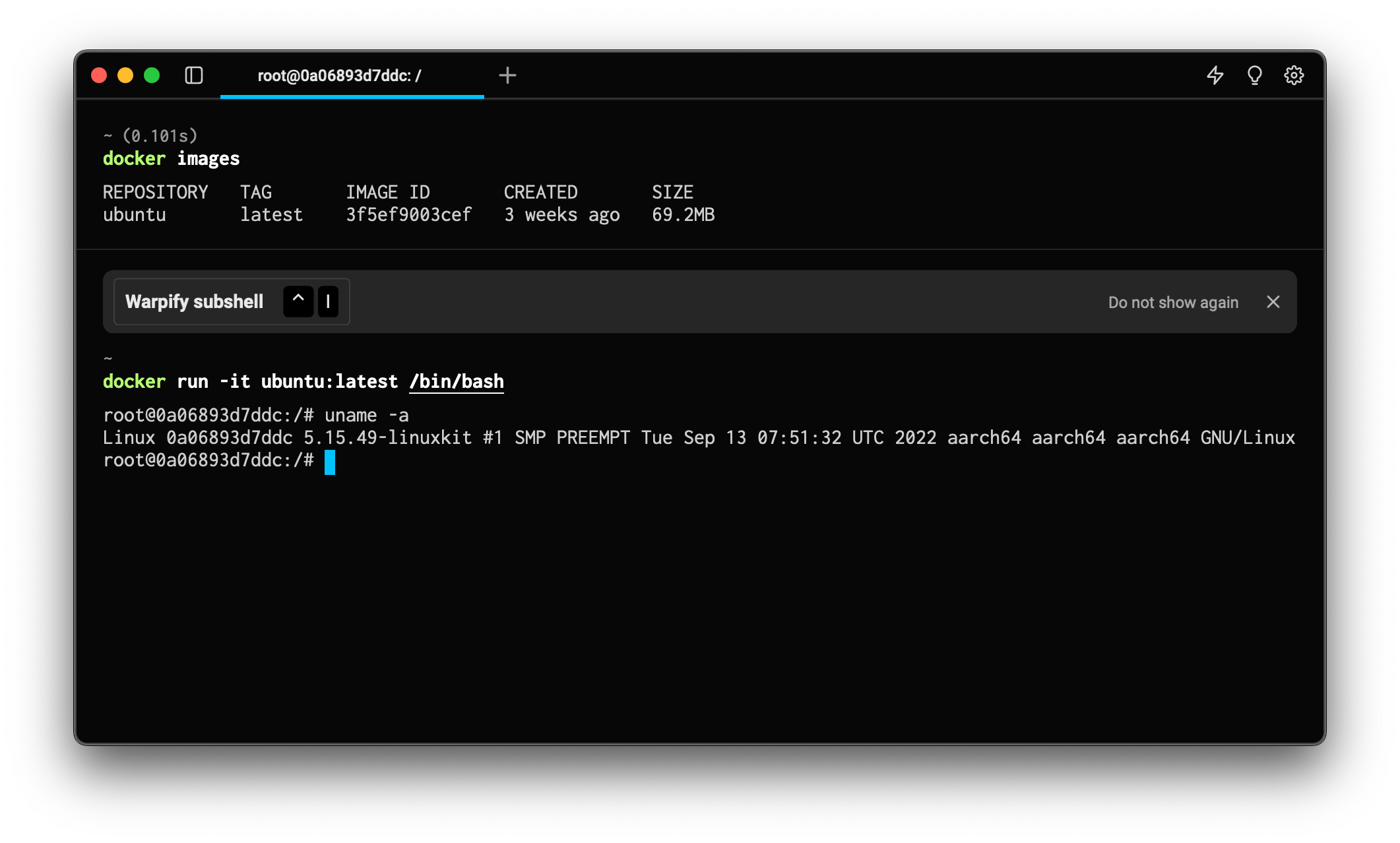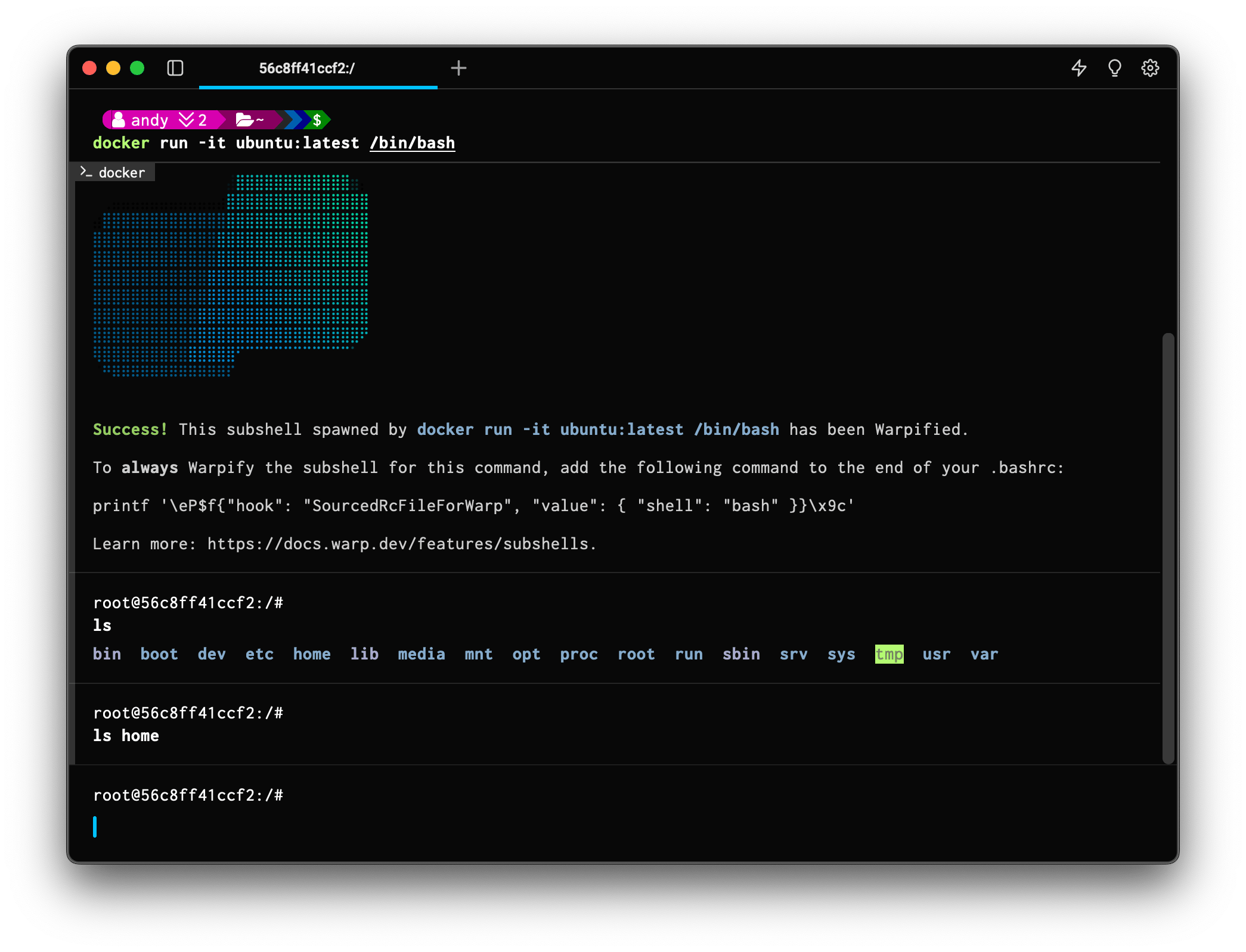 Check out the docs or run a command like docker exec to experience the power of Warpification today!