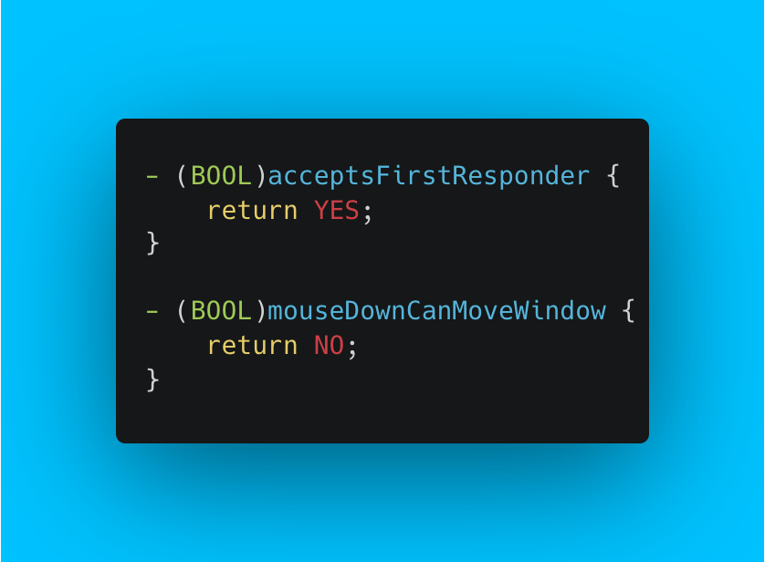 To investigate this issue, I started with the Apple documentation for macOS APIs. Unfortunately, that documentation doesn’t provide many examples and there wasn’t an obvious single value I could set to prevent the dragging. Similarly, neither basic web searches nor stack overflow provided any help. There was plenty of writing about how to make other areas of the window cause a drag, but nothing I could find that would let me turn off the drag for the title bar. What little I could find, I tried in my sample app, to no avail.
